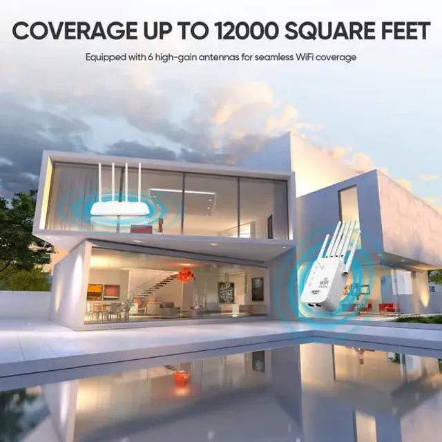 🌟 WiFi Extender: 6-Antenna Strong Signal BoosterThe WiFi Extender 2025 features 6 antennas for enhanced signal strength. It offers 1200Mbps dual band (5GHz/2.4GHz) boosting, ensuring fast and reliable internet. This repeater covers up to 12,000 sq. ft and supports 100 devices. Perfect for home studios, remote workspaces, and VR areas.